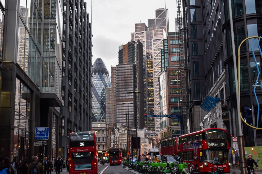 Bank som ligger like rundt hjørnet skiller seg veldig fra Spitalfields da det er et typisk finansområde.